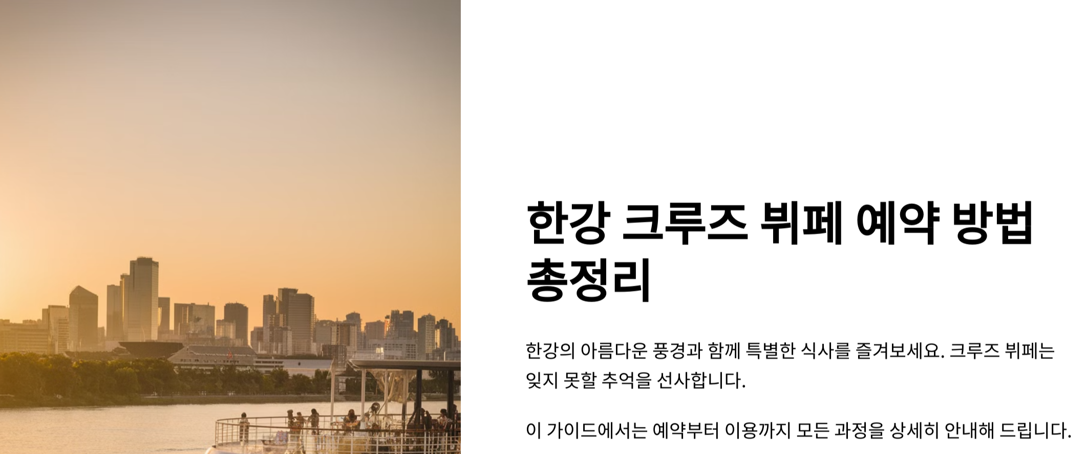 한강의 멋진 야경을 보며 맛있는 뷔페를 즐길 수 있는 한강 크루즈 뷔페! 하지만, 막상 가려고 하면 어디서 어떻게 예약해야 하는지 헷갈리는 경우가 많습니다.